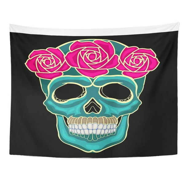 Zealgned Colorful Candy Skull Roses On Drawing Gothic Black Color Wall Art Hanging Tapestry Home Decor For Living Room Bedroom Dorm 51x60 Inch Walmart Com Walmart Com