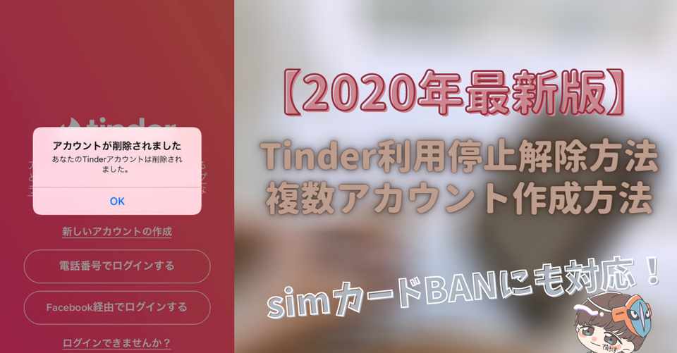 年10月末最新版 Tinderアカウント利用停止解除方法 複数アカウント作成方法 まとめ アカウント削除 凍結解除 デオくん ネットナンパ 美容 Note